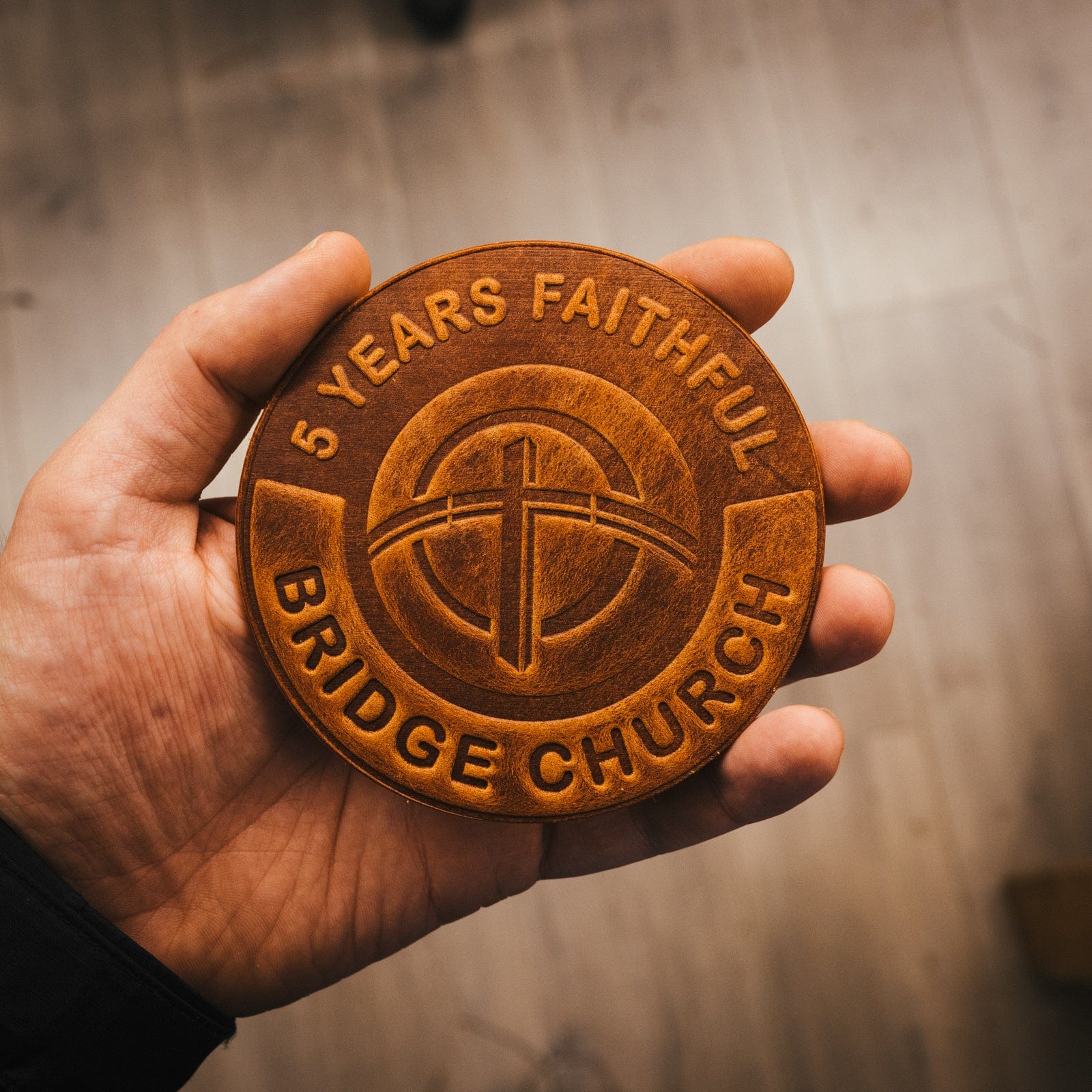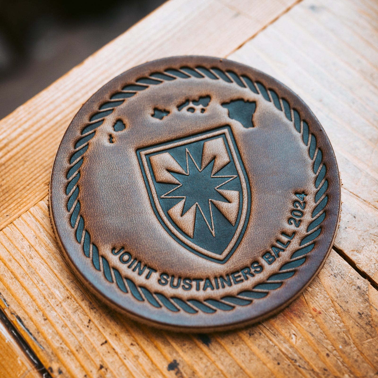 Our custom coasters are made from heavweight premium leather: the same thick leather we make our belts out of.