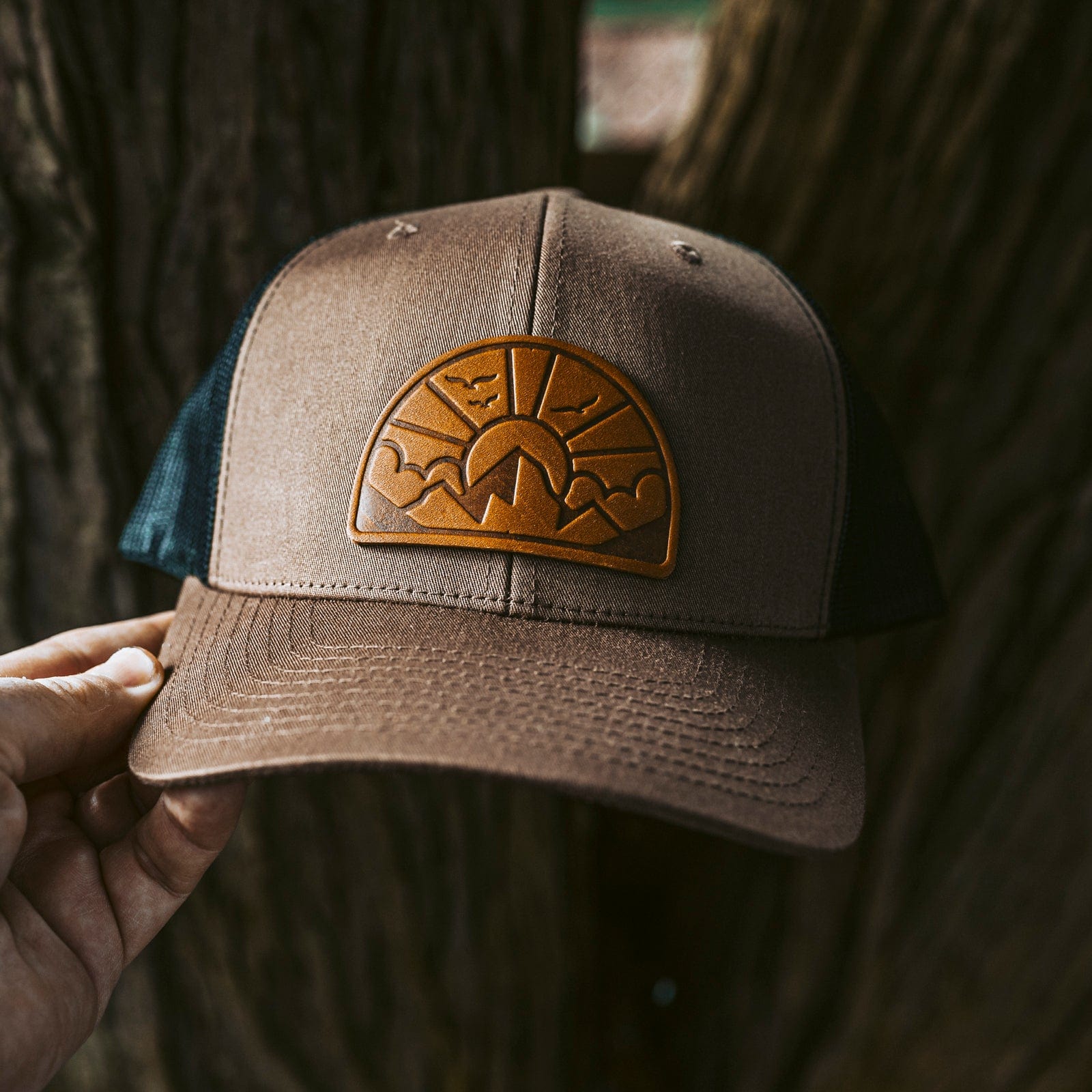 This isn't just a hat; it's a salute to the early risers and the adventure seekers. Featuring a meticulously crafted leather patch that captures the serene beauty of a mountain at sunrise, this hat is a reminder of the majestic moments that await us at the start of each day.