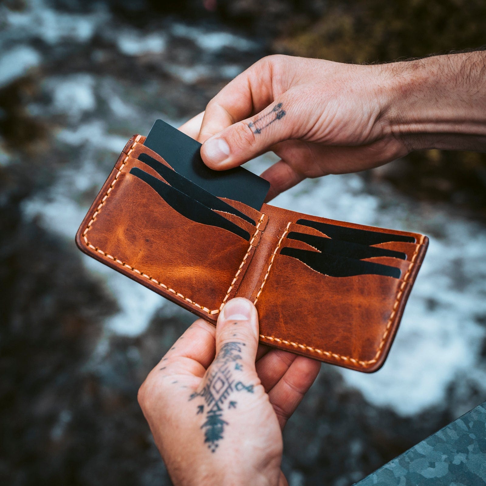 Full-grain leather means your wallet will develop character and patina. We hand-sew this wallet with thick polyester thread for decades of use. We also burnish and polish the wallet edges which adds refinement to the finished piece. The wallet features a convenient billfold for quick access to your cash. Our minimalist design allows you to carry all your essential cards and cash without the bulk. We take a lot of pride in our work and back each wallet with a lifetime guarantee.