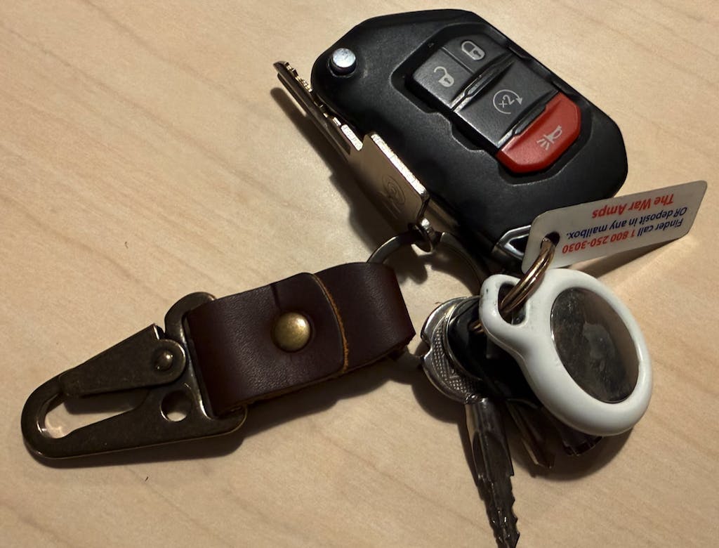 "Really nice compliment to my matching wallet, the clip seems strong and works well with my sling bag and backpack." - James