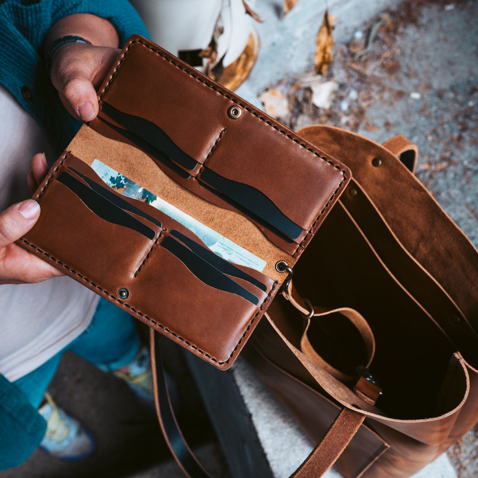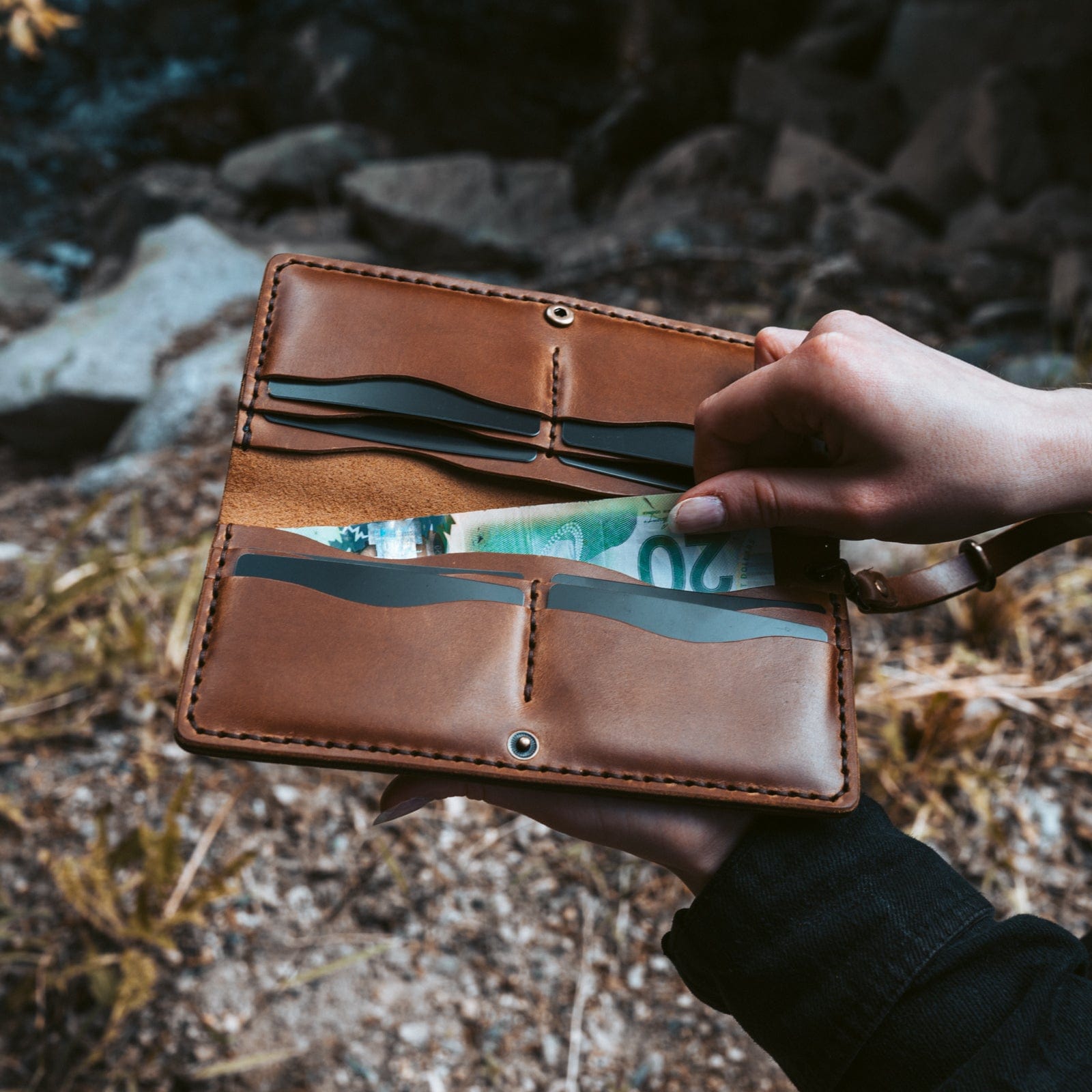 Our full-grain leather means your clutch will develop character and patina with every use. We hand-sew this wallet with thick Tiger Thread so it will never unravel or come apart. The clutch features generous storage for cash, cards, and even your phone. Carry everything you need without having to choose what stays home. We take a lot of pride in our work and back each clutch with a lifetime guarantee.