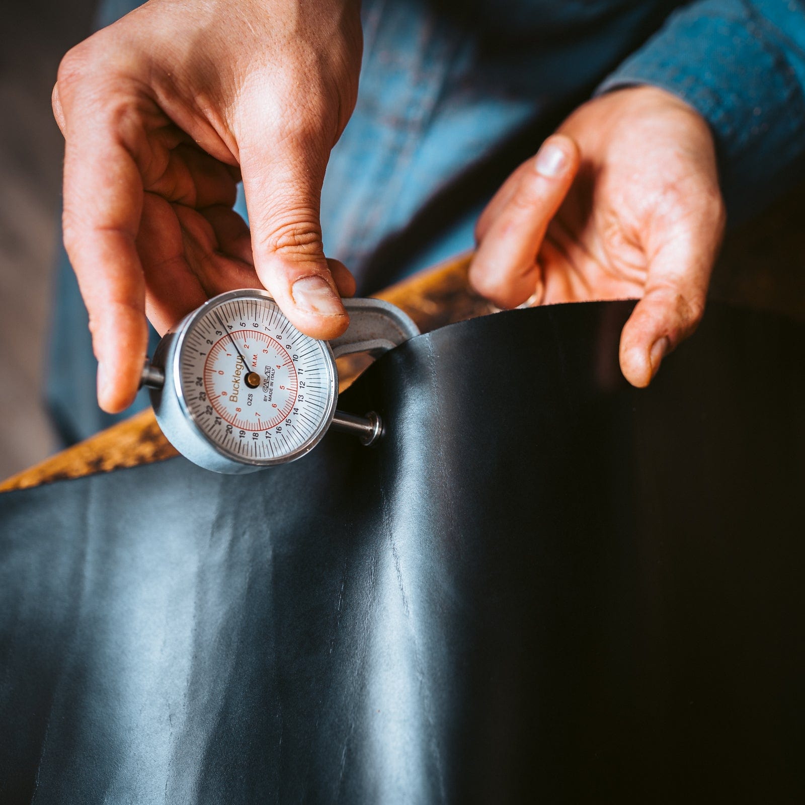 - Crafted from thick 9oz full-grain leather, this durable leather develops a rich patina over time.
