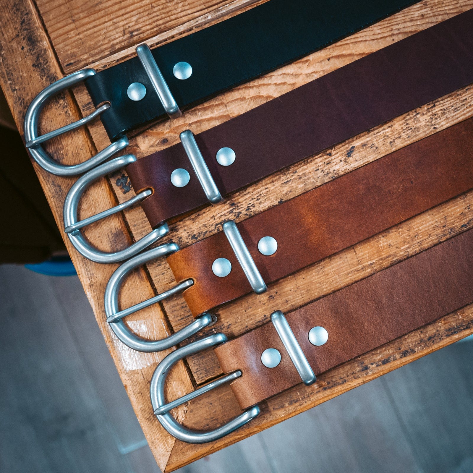 - Solid brass Chicago screws secure hardware while allowing custom buckle swaps