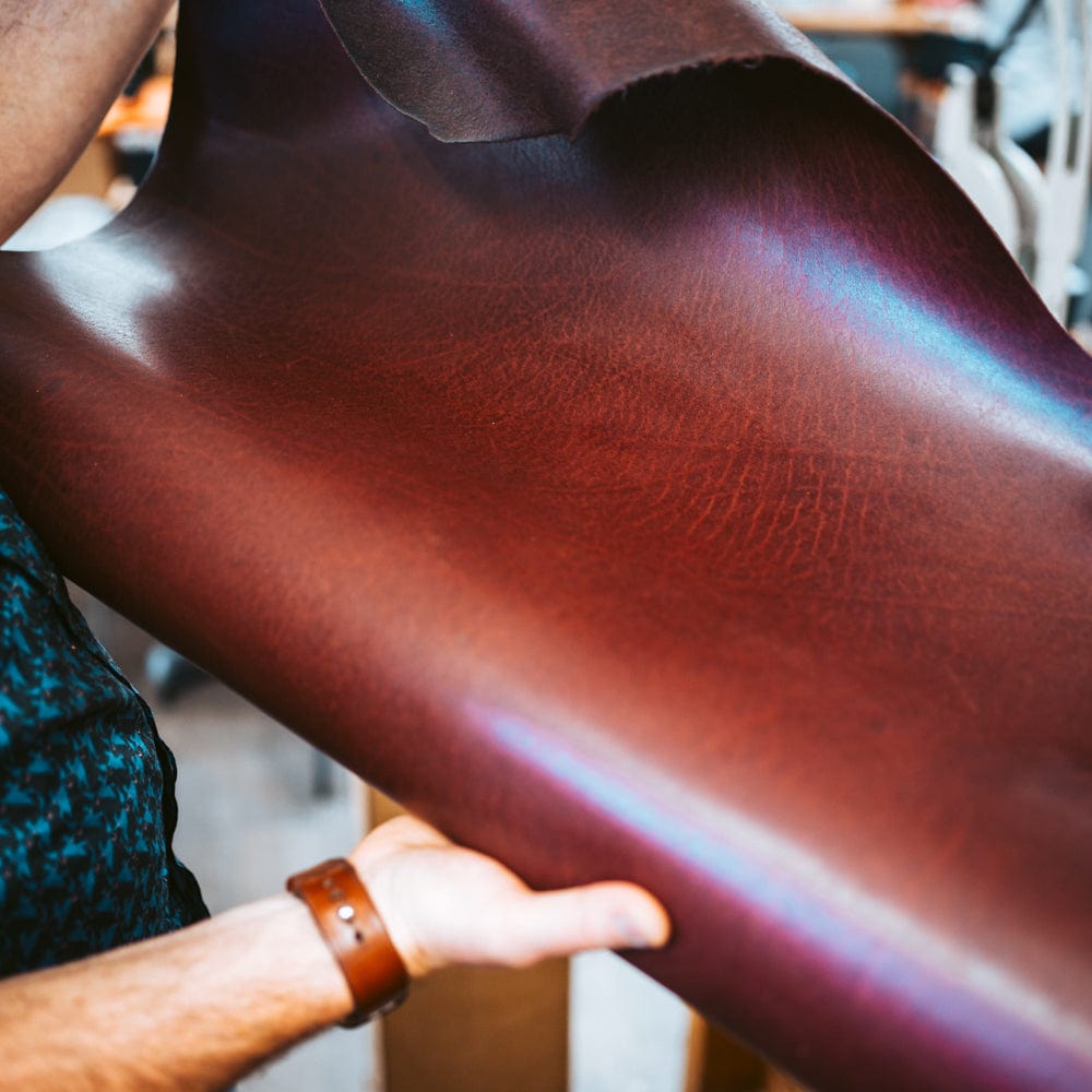 - Crafted from thick, premium, full-grain leather, this durable leather develops a rich patina.