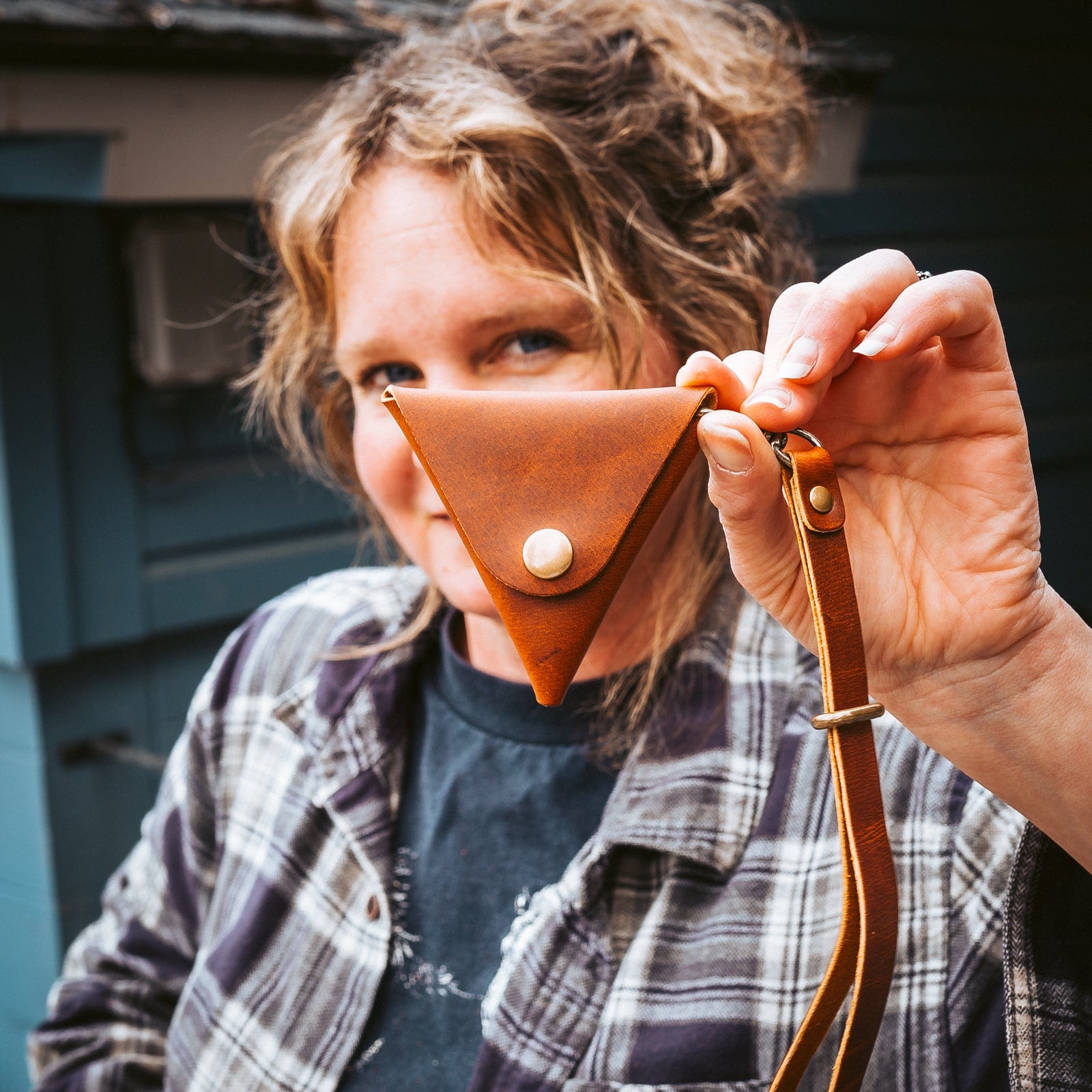 Built from the same full-grain leather we use in all our goods, this pouch develops character with every outing. The triangular design isn't just for looks; it's practical. Toss it in a larger bag or use the detachable wristlet when you want to travel light. Perfect for nights out when a full wallet is overkill, or anytime you need quick access to the small stuff that always seems to disappear.