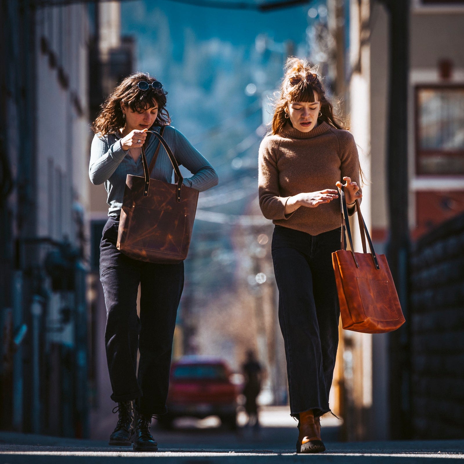 Our full-grain leather tote is the perfect companion for your busy day – roomy enough for laptops and notebooks, yet stylish enough for evenings out. The thoughtfully designed pockets keep your essentials organized, while the supple leather develops a beautiful patina that tells the story of your adventures together.